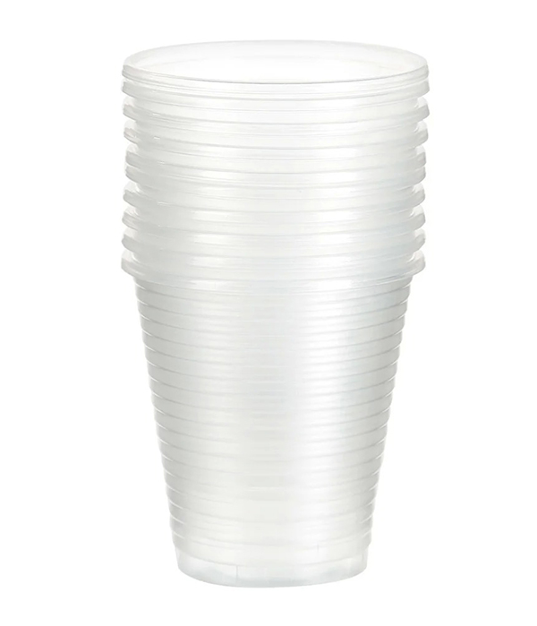 Бесцветные, 200 мл. Продаются в упаковке по 100 шт. Предназначены для воды, чая или кофе.